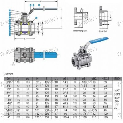 上海自龍閥門制造有限公司生產(chǎn)的不銹鋼三片式球閥(3PC)Q11F-16/64C/P/R,用于截?cái)嗷蚪油ü苈分械慕橘|(zhì),選用不同的材質(zhì),可分別適用于水、油品、液化氣、天然氣、煤氣、硝酸、醋酸、氧化性介質(zhì)、尿素等多種介質(zhì)。