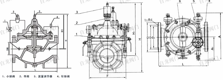 上海自龍閥門制造有限公司生產(chǎn)的400X流量控制閥由主閥、流量調(diào)節(jié)閥、針閥、導(dǎo)閥、球閥、微形過濾器和壓力表組成水力控制接管系統(tǒng)。利用水力自動操作,控制和調(diào)節(jié)主閥開度,使通過主閥的流量保持不變。400X流量控制閥利用水力自力控制,不需要其它裝置和能源,保養(yǎng)簡便,流量控制穩(wěn)定。400X流量控制閥廣泛用于高層建筑、生活區(qū)等供水管網(wǎng)系統(tǒng)及城市供水工程。當(dāng)閥門從進口端給水時,水流過針閥進入主閥控制室,并經(jīng)過導(dǎo)閥、球閥流出主閥控制室到出口,此時主閥處于全開或浮動狀態(tài)。調(diào)定主閥上部的流量調(diào)節(jié)閥,可為主閥設(shè)定一定開度。調(diào)節(jié)針閥開度和調(diào)節(jié)導(dǎo)閥彈簧壓力,即可使主閥開度保持在設(shè)定開度,并在壓力變化時導(dǎo)閥進行自動調(diào)節(jié),保持流量不變。