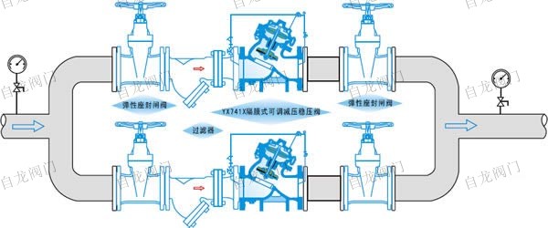 上海自龍閥門制造有限公司生產(chǎn)的YX741X可調(diào)式減壓穩(wěn)壓閥一般安裝在供水管網(wǎng)系統(tǒng)的上游,實(shí)現(xiàn)對其下游管網(wǎng)或裝置的減壓穩(wěn)壓功能。YX741X可調(diào)式減壓穩(wěn)壓閥產(chǎn)品廣泛用于高層建筑、生活區(qū)域或其它供水管網(wǎng)系統(tǒng)的水壓控制。有隔膜式與活塞式可選。