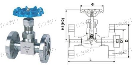 上海自龍閥門制造有限公司生產(chǎn)的J48H型法蘭式針型閥的密封性良好,一般用于較小流量,較高壓力的氣體或液體(如蒸汽、油品)介質(zhì)的密封。該針型閥種類一般分為普通截止閥、針型截止閥、角式針型閥、儀表針型閥、波紋管針型閥、閥組等。針型截止閥的密封性良好,使用壽命長,即使密封面損壞后,也只需要更換易損零件,即可繼續(xù)使用。針形截止閥的密封性良好,使用壽命長,即使密封面損壞后,也只需要更換易損零件,即可繼續(xù)使用。安裝時(shí)應(yīng)使介質(zhì)的流向與閥體上的箭頭方向一致。針形閥門的閥芯就是一個很尖的圓錐體,好象針一樣插入閥座,由此得名。 針形閥門比其他類型的閥門能夠耐受更大的壓力,密封性能好,所以一般用于較小流量,較高壓力的氣體或者液體介質(zhì)的密封。 針形閥門與壓力表配合使用是最合適的了,一般的針形閥門都做成螺紋連接(當(dāng)然也有法蘭及其他形式的連接)。