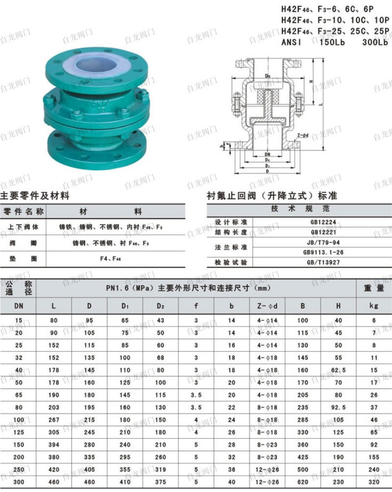 名    稱: 襯氟立式止回閥H42F46